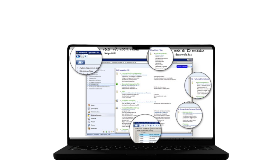 Los Módulos de Business Concepts SL, incluidos SL Impuestos Mx 2020, SL Factura Electrónica 2019, SL Recepción Factura Electrónica, Transferencias Bancarias y Activos Fijos, abordan los desafíos operativos para los usuarios de Microsoft Dynamics SL.